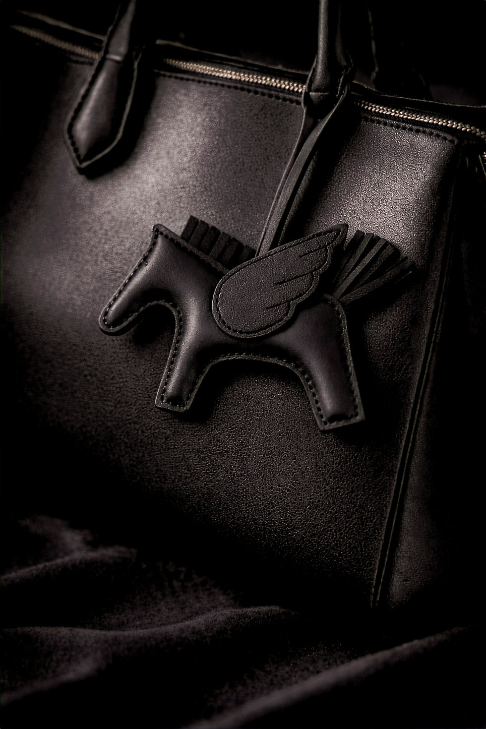 Taschenanhänger Schwarz PEGASUS aus Leder